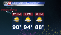 SUNDAY: Hot, partly cloudy. Highs around 90. Wind: ESE 5-10 mph.